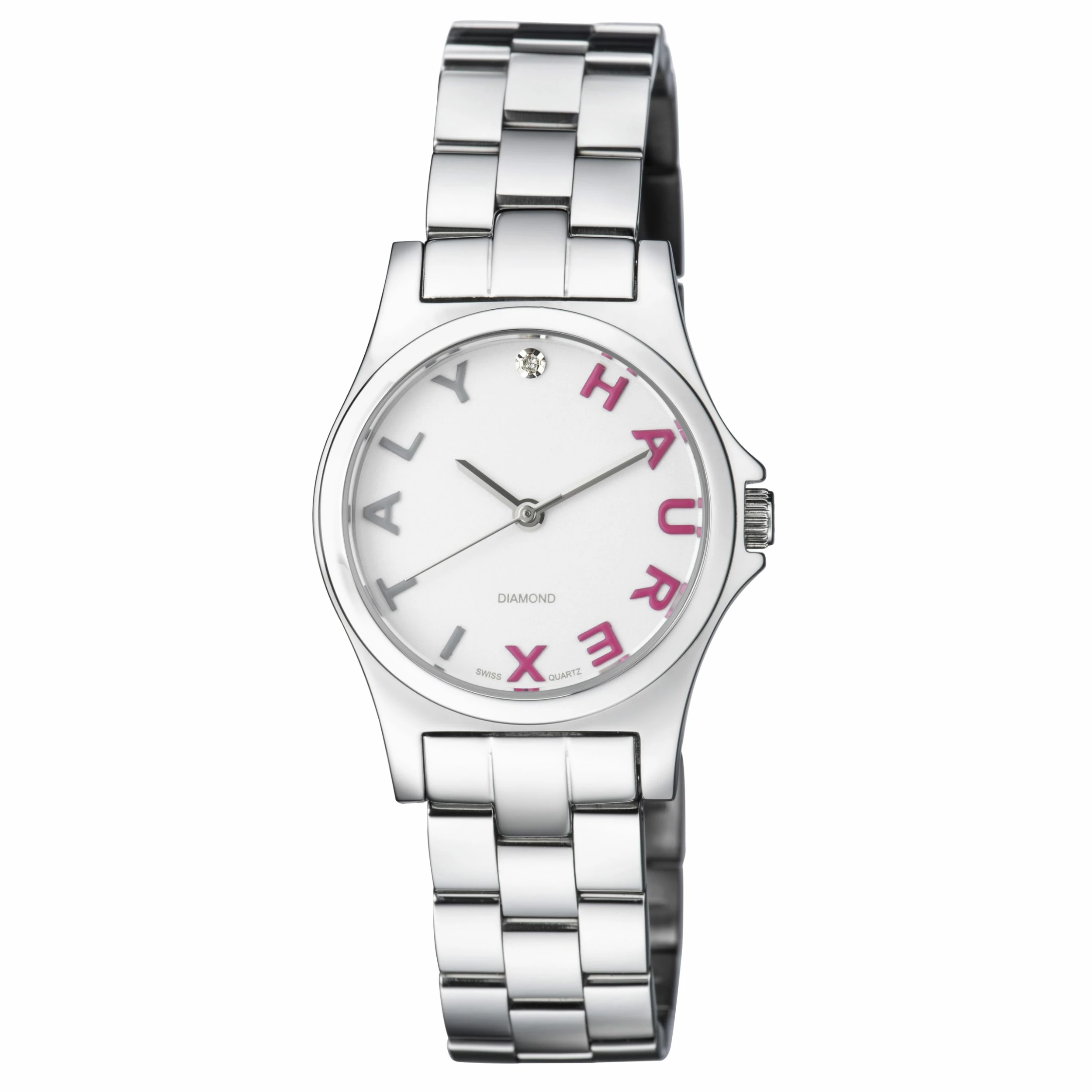 Haurex City Quartz Analog White Dial Stainless Steel Watch # 7A505DPS (Women Watch). Model Number: 7A505DPS 7A505DP 7A505D 7A505. Movement Type: Quartz. Water Resistant Depth: 30 meters. Crystal: Mineral. Bezel Function: Stationary. Bezel Material: Stainless Steel. Clasp Type: Fold Over Clasp with Push Button. Case Material: Stainless Steel. Case Size Diameter: 28 millimetres. BandLength: Women Standard. Case Size Thickness: 7 millimetres. Band Material: Stainless Steel. Item Shape: Round Shape. Display Type: Analog. Dial Color: White. Band Color: Silver.