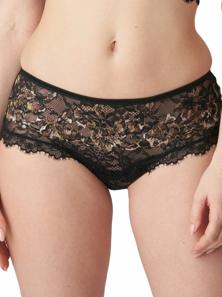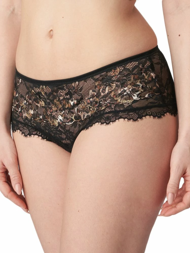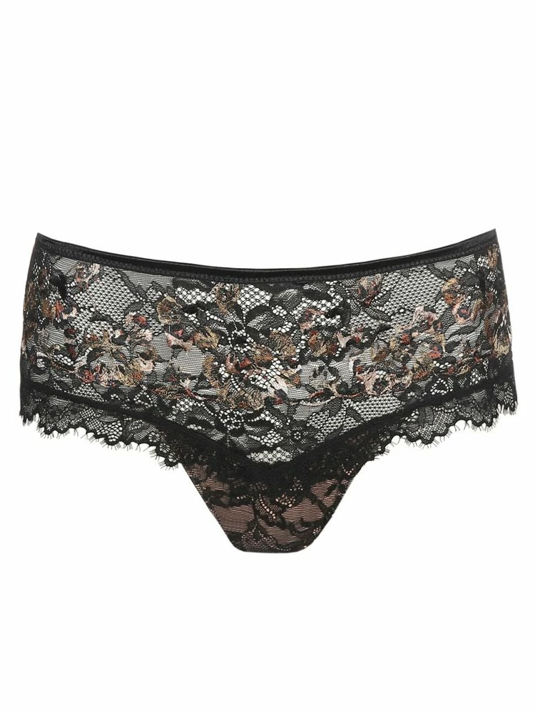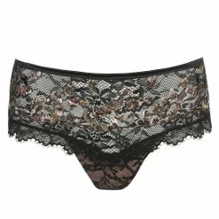 The all-over lace luxury thong from the PrimaDonna Arau range is pretty yet chic. The leopard print embroidery covers the front of the briefs, whilst floral lace covers the back. Fully sheer with lined gusset for all day comfort. Size Guide: S (10), M (12), L (14), XL (16).