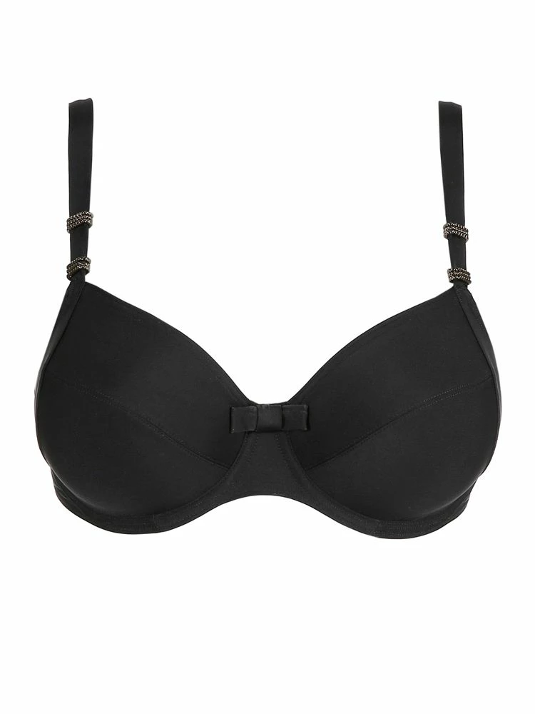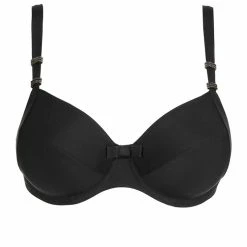 Elegant bikini top with three-section cups. The glossy accents on the shoulder straps and the feminine bow between the cups create an exceptionally chic look. The integrated wire bra in sturdy microfibre creates attractively round breasts.