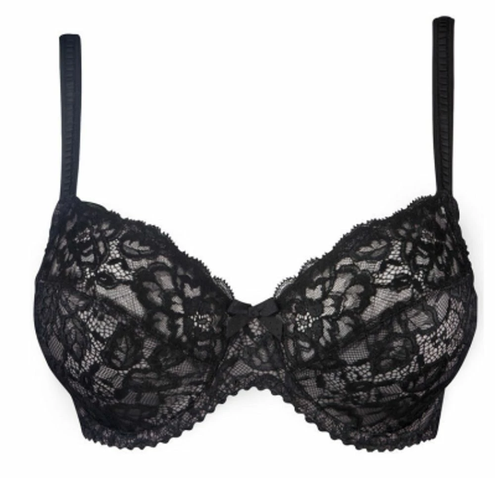 This sensual balconnet is the only style in the series with all-over lace, which creates a very feminine look. The shoulder straps are decorated with a fine stitched band. The firm double-layered Mider cups lift your breasts and the upper cups reveal full yet subtle cleavage. Available in colours, Black.