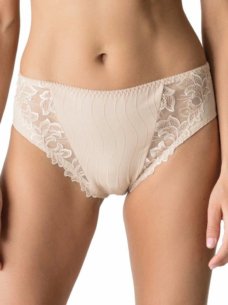 PrimaDonna Deauville, this Mid rise brief is perfect for every occasion. This full brief has good overall coverage with an opaque patterned front panel framed by stunning lace embroidered detailing. The plush back scalloped elastic waist band adds extra comfort and a charming touch to this stunning brief.
