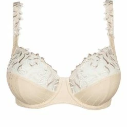 Prima Donna Deauville – a bra that is perfect for every day wear. This 3 section full cup high cut gore bra gives the breast full coverage. The 3 section cup, high side support and underwiring give a lift and forward project your bust, whilst also giving support. With the top section of the bra being semi sheer, with subtle but equally beautiful embroidery that carries on up the adjustable straps, it adds a touch of class to any lingerie drawer. The perfect bra for difficult breasts.