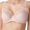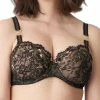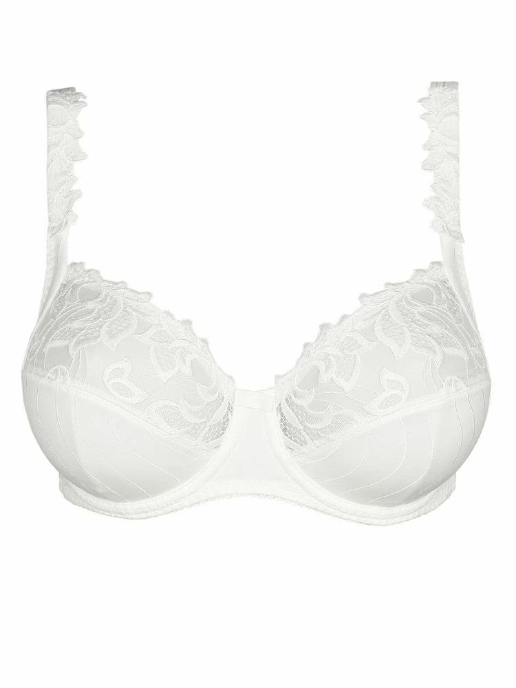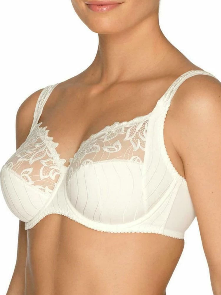 Prima Donna Deauville – a bra that is perfect for every day wear. This 3 section full cup high cut gore bra gives the breast full coverage. The 3 section cup, high side support and underwiring give a lift and forward project your bust, whilst also giving support. With the top section of the bra being semi sheer, with subtle but equally beautiful embroidery that carries on up the adjustable straps, it adds a touch of class to any lingerie drawer. The perfect bra for difficult breasts.
