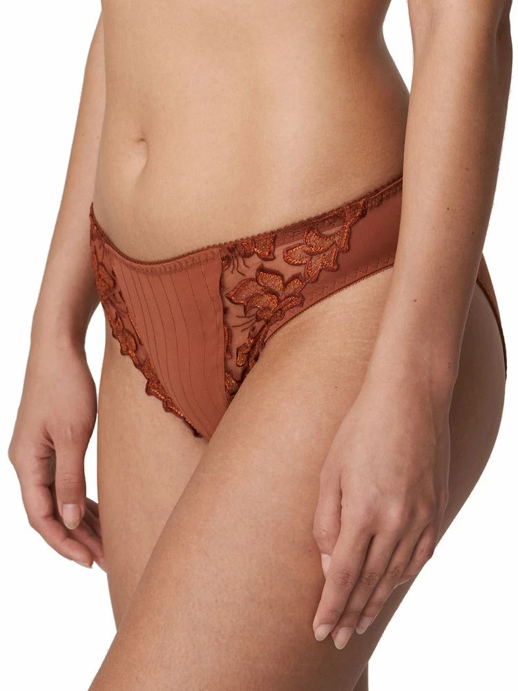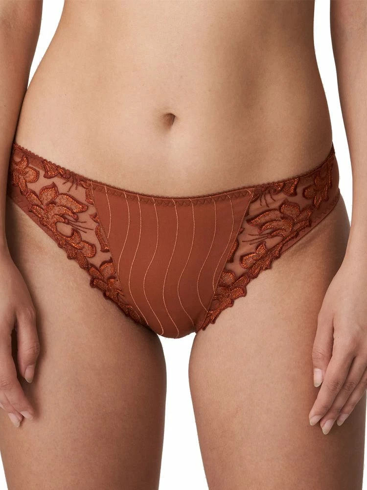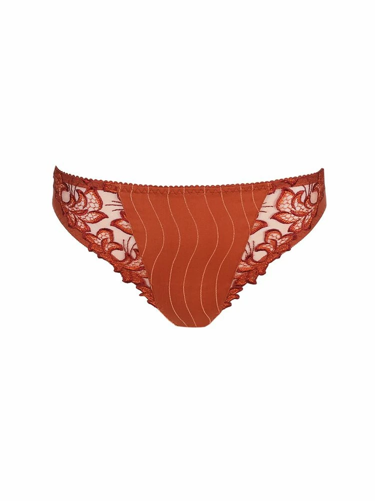 PrimaDonna Deauville, this mid rise brief is perfect for every occasion. This full brief has good overall coverage with an opaque patterned front panel framed by stunning lace embroidered detailing. The plush back scalloped elastic waist band adds extra comfort and a charming touch to this stunning brief.