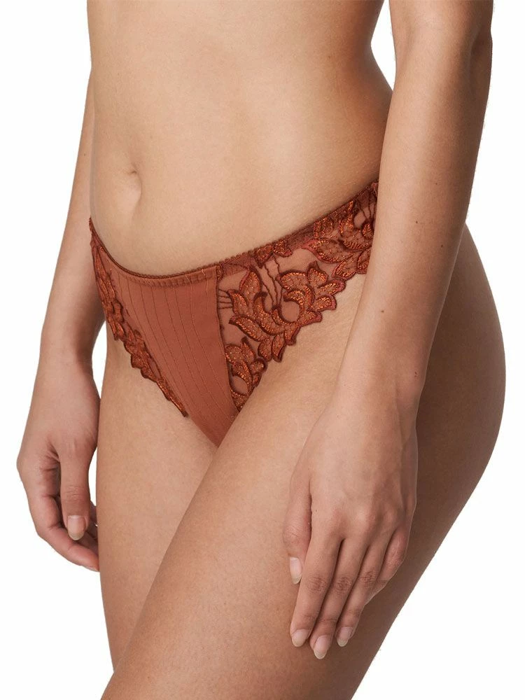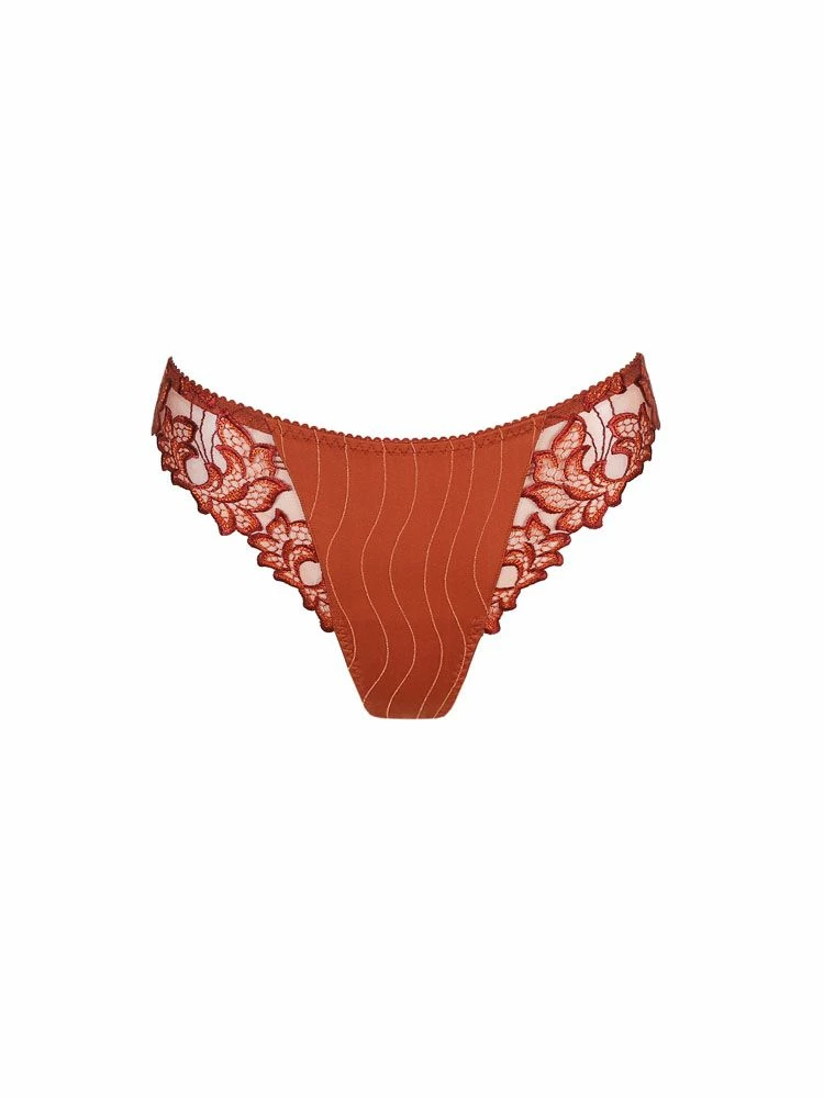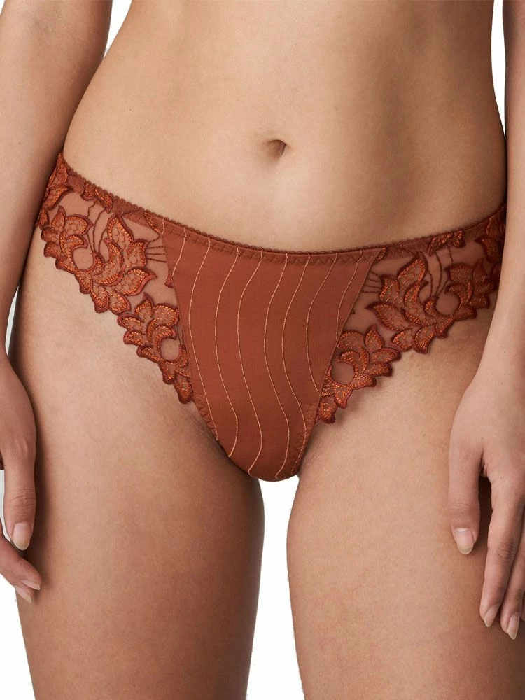 This beautiful thong from the Deauville collection offers all day comfort whilst adding a touch of girlie with the lace pannels. These knickers have minimal rear coverage and a lined gusset. Matches perfectly with the Deauville range in Cinnamon, available from our eBay store.