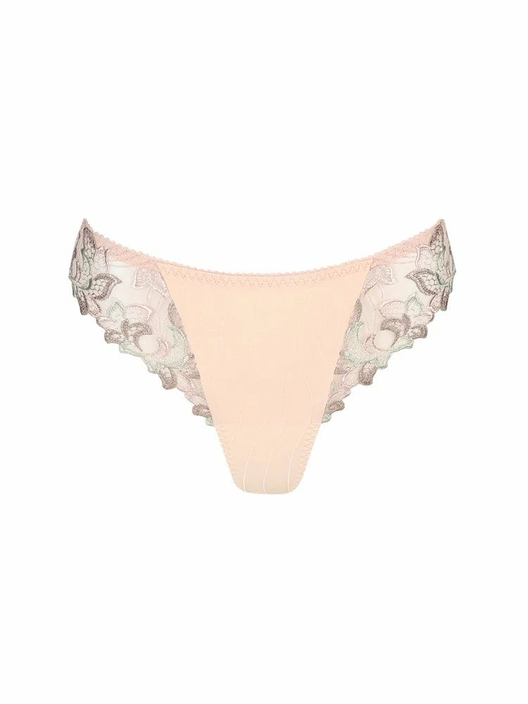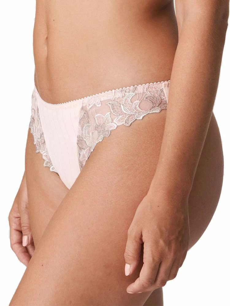 This beautiful thong from the Deauville collection offers all day comfort whilst adding a feminine touch with the lace pannels. These knickers have minimal rear coverage and a lined gusset.