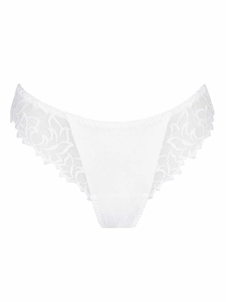 This beautiful thong from the Deauville collection offers all day comfort whilst adding a touch of girlie with the lace pannels. These knickers have minimal rear coverage and a lined gusset.
