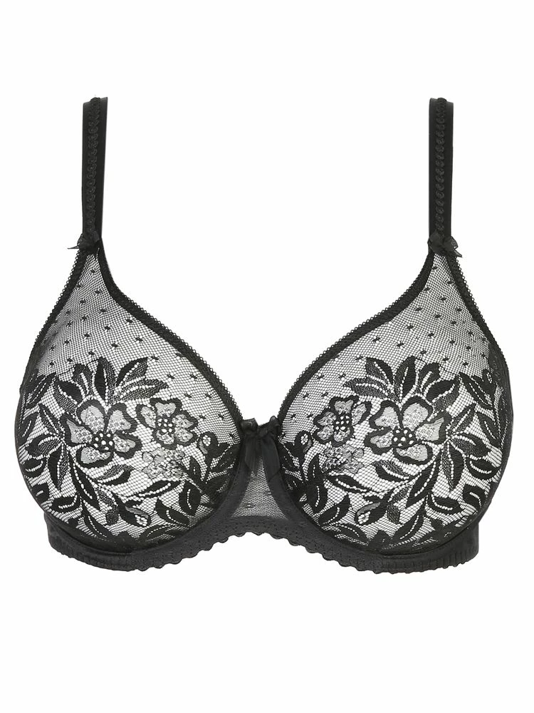 PrimaDonna Divine, this gorgeous underwired full cup bra features sheer lace seamless cups for a sexy and captivating look. The cups are preformed and help to centre and support your bust for a flattering fit. The wide side wings offer extra comfort, whilst the adjustable straps help with the ease of fit. Complete with 3 cute bows.