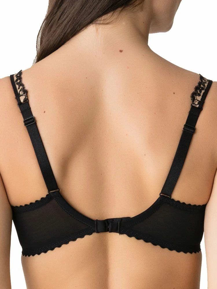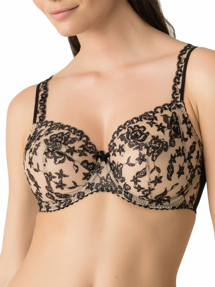 PrimaDonna Dolce Vita Full Cup Bra, offering a sexy feminine feel with its underwired cups giving you the shape and uplift you need. The side section creating you a perfect round shape. So glamorous with black embroidery on a beige base. Finished with a little bow in the center to add that extra cuteness. 100% one for the lingerie collection.