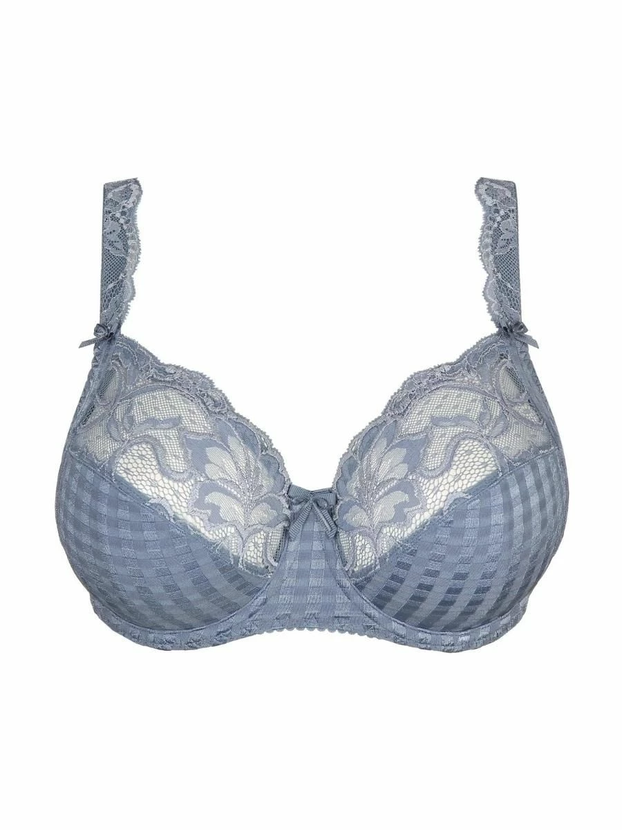 PrimaDonna Madison, this luxurious full cup bra is adorned in a soft gingham style fabric for a charming look whilst the 3-section cup which helps to center, support and provide natural uplift to the bust. The underwire is encased in 3 layers of fabric incuding a layer of foam to offer optimum comfort. The two tone stretch lace top cup adds a captivating touch, whilst the side support panel offers forward projection of the bust for a flattering fit. The bottom cup is lined and the wide side wings offer extra comfort. The partly adjustable straps feature beautiful lace detail and continue onto the wings for added support.