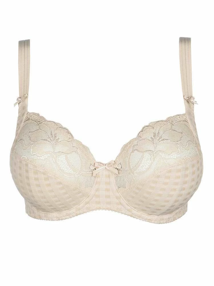 PrimaDonna Madison, this luxurious full cup bra is adorned in a soft gingham style fabric for a charming look whilst the 3-section cup which helps to center, support and provide natural uplift to the bust. The underwire is encased in 3 layers of fabric incuding a layer of foam to offer optimum comfort. The two tone stretch lace top cup adds a captivating touch, whilst the side support panel offers forward projection of the bust for a flattering fit. The bottom cup is lined and the wide side wings offer extra comfort. The partly adjustable straps feature beautiful lace detail and continue onto the wings for added support.