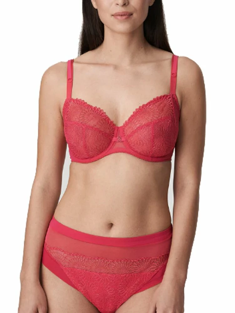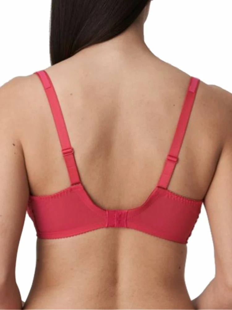 PrimaDonna Sophora – a bra that is perfect for every day wear. This 3 section full cup unlined bra gives the breast full coverage. The 3 section cup, high side support and underwiring give a lift and forward project your bust, whilst also giving support. With beautiful embroidery on a skintone tulle, it adds a touch of class to any lingerie drawer.