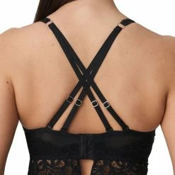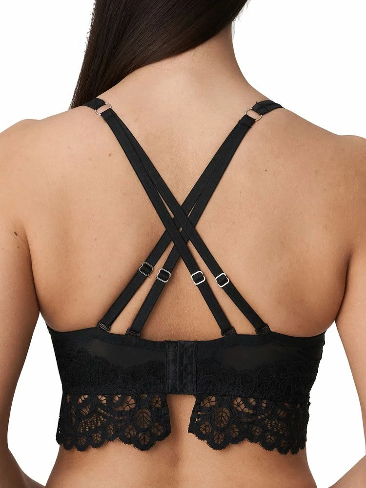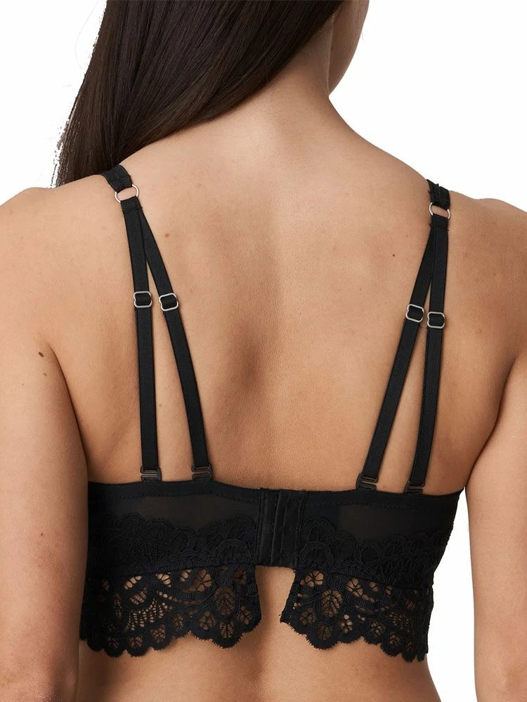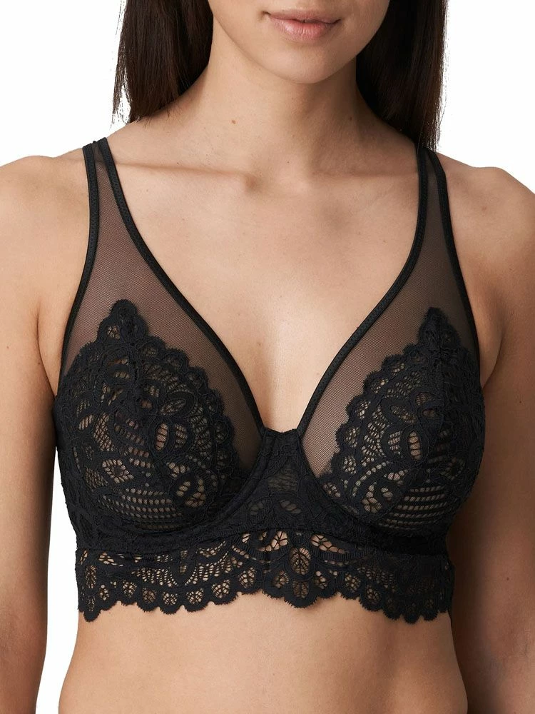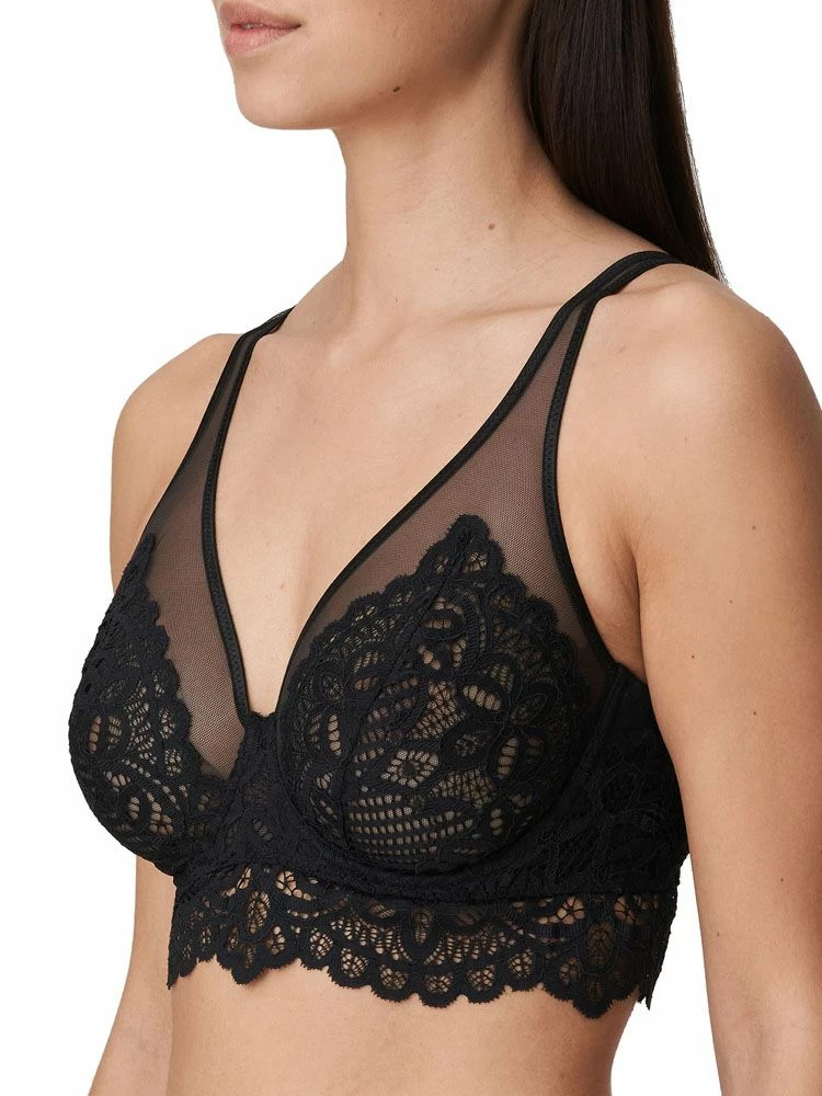 PrimaDonna Twist First Night – a bra that is perfect for every day wear. This triangle plunge bra has high side support and underwiring give a lift and forward project your bust, whilst also giving support. With the top section of the bra being semi sheer, with subtle but equally beautiful embroidery that carries on up the adjustable straps, it adds a touch of class to any lingerie drawer. The perfect bra for difficult breasts.
