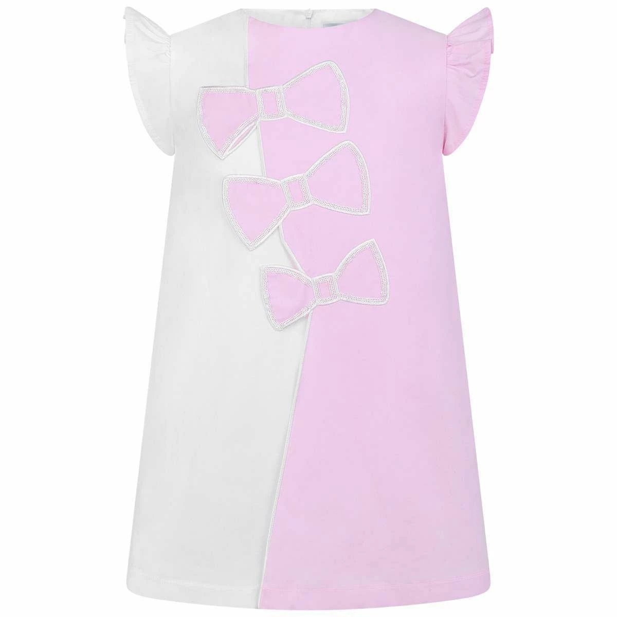 Simonetta Baby Girls Pink & White Cotton Bow Dress