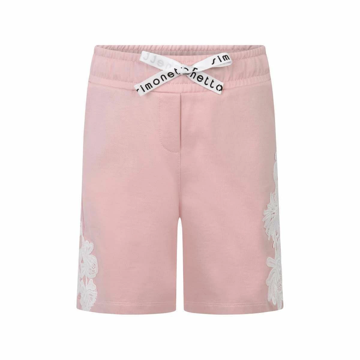 Simonetta Girls Pink Shorts with Embroidered Lace